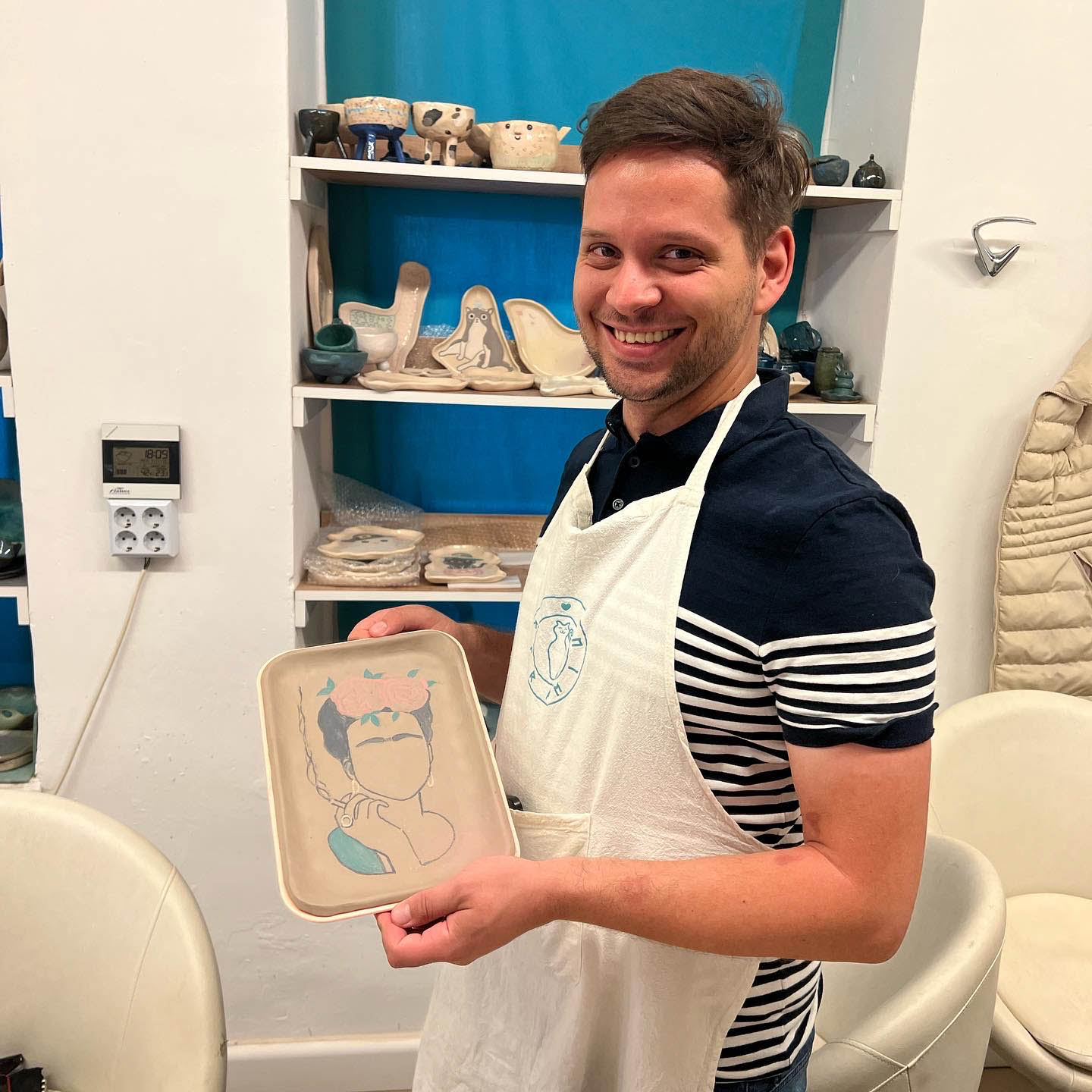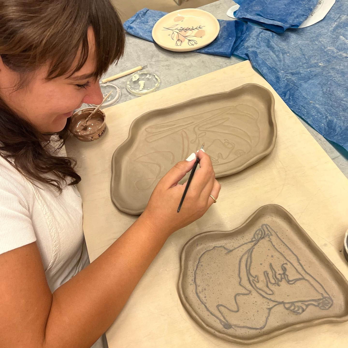 A festés színezett agyag azaz engób használatával történik, amit a workshopon te készítesz el. Egy hét száradás után mi (a Kerámia csapata) utómunkálatokat folytatunk rajtauk, elszivacsoljuk, majd következik az első égetés. Ezt követően átlátszó mázzal borítjuk az elkészült műalkotásokat majd a második égetést után csodás fényes mízes-mázas tányérkák várnak majd átvételkor! A kerámiák 4-5 hét elteltével készülnek el!