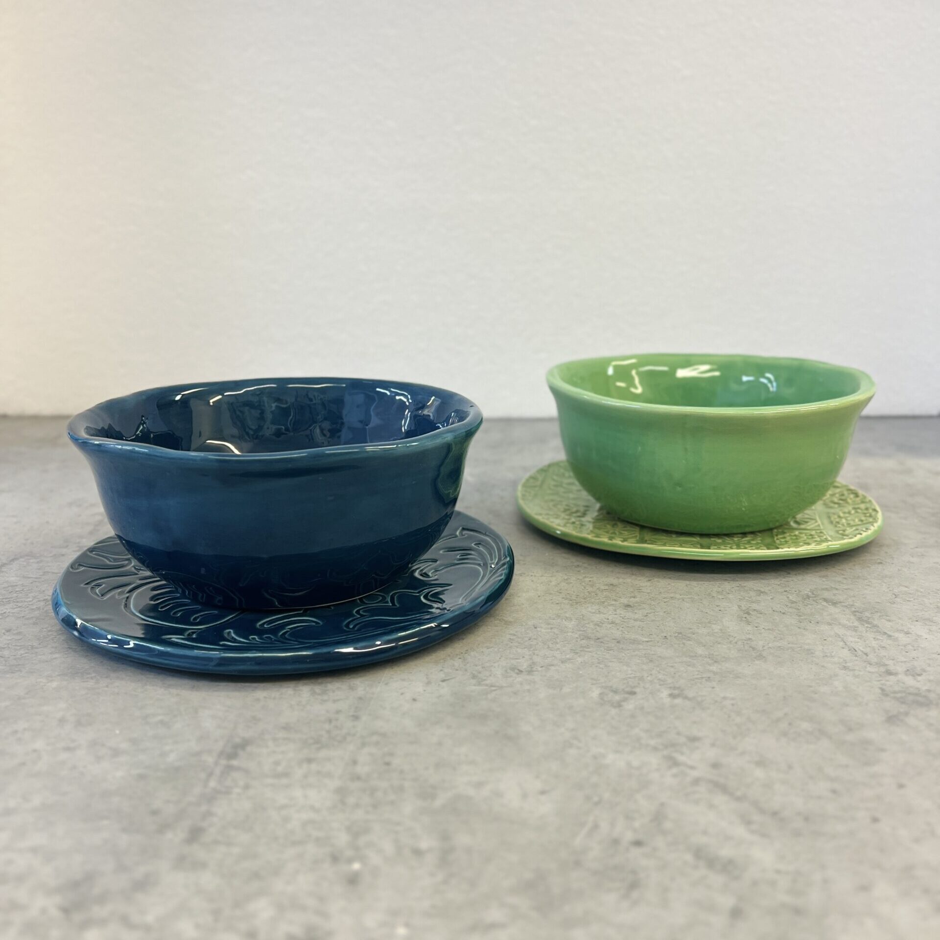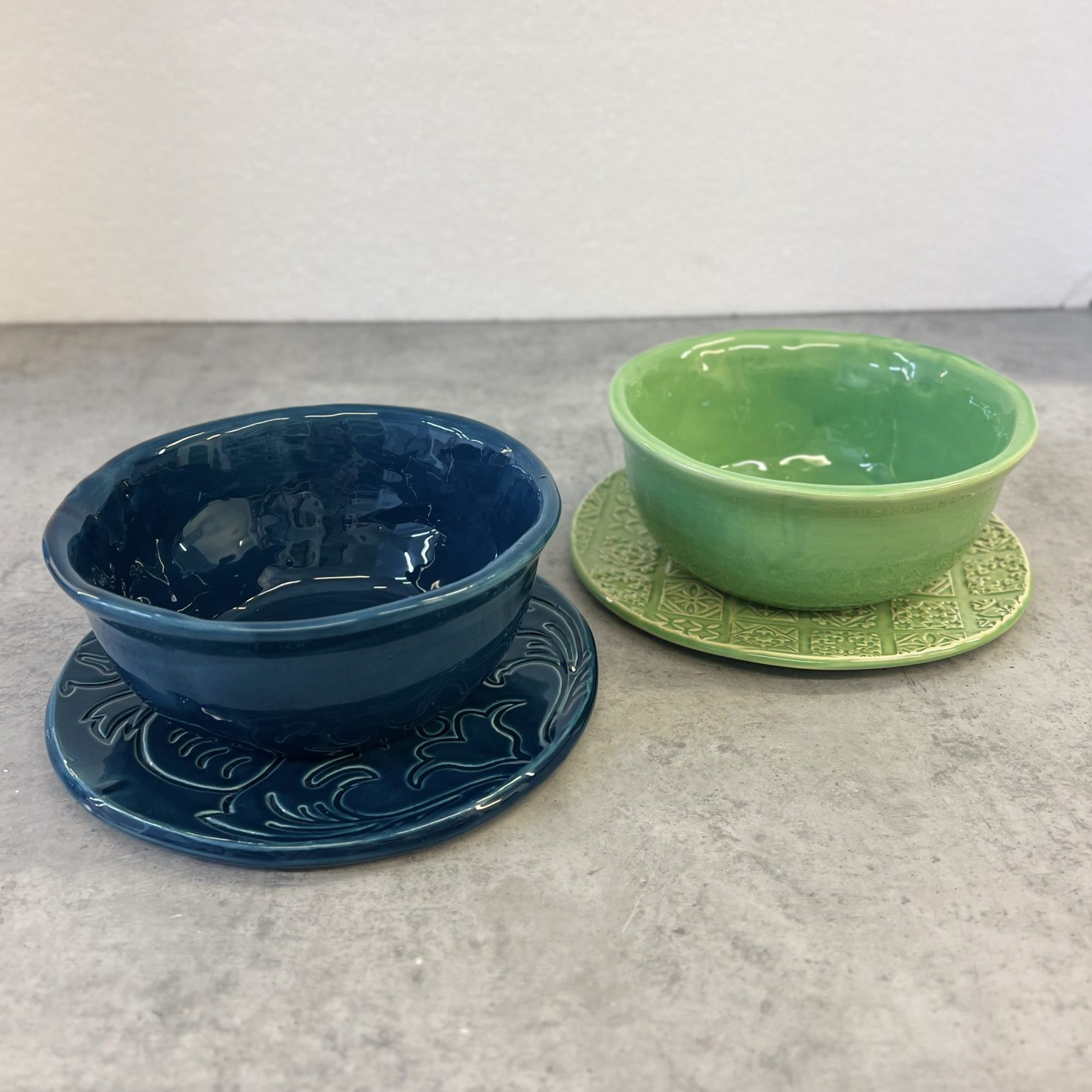 Alkoss leveses/müzlis tálakat alátéttel! A mélytányérok kb 4-5 dl űrtartalmúak lesznek az égetést követően! A foglalkozáson lenyújtott agyaglapból indulunk ki és gipszformák segítségével alkotjuk meg a tálakat, amik ennek köszönhetően meglehetősen szabályosra készíthetőek! Az alátétekre van lehetőség mintázófákkal/hengerekkel/pecsétekkel egyedi felületeket kialakítani! A foglalkozás során két szett (összesen 4 db kerámia 2 lapos és két mélytányér) készíthető! Minden alkotásra külön külön van lehetőség mázszínt választani 12 opcióból!